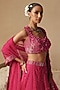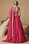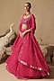 Featuring a fuchsia pink lehenga in organza and net base. It is paired with a 3D floral embellished blouse and a dupatta. Accentuate it with polki dangler earrings and wedges for sangeet or wedding ceremonies.