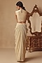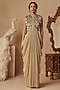 Featuring a gold cowl draped gown saree in platinoir crepe and chanderi base with sequins hand embroidery. Accentuate it with polki dangler earrings and wedges for festive occasions or wedding ceremonies.