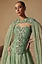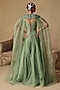 Featuring a green lehenga in organza and net base. It is paired with a 3D floral embellished corset and a floral cape. Accentuate it with polki earrings and wedges for mehendi or wedding ceremonies.