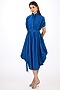 Featuring a blue draped midi dress in cotton silk base with shirt placket detailing. It is paired with a belt. Accentuate it with statement earrings and heels for an evening look.