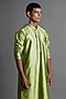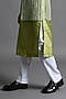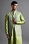Featuring a green bundi jacket in dupion silk base with crystal bead and sequins embellishments. It is paired with a kurta. Style it with pants and kolhapuri sandals for a mehendi, cultural event, wedding or engagement wear.