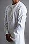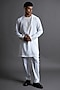 Featuring a pristine white kurta in linen base with mandarin collar, cutdana and hand embroidery. Style it with pants and kolhapuri sandals for a festive occasion, cultural event, wedding or engagement wear.