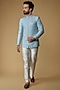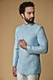 Sky Blue Self Textured Cotton Embroidered Bandhgala Jacket