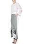 Featuring a white pants in cotton poplin base with grey wrap panel and pleating detail.