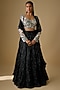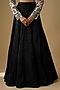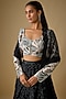 Featuring a black cascade lehenga in crepe, double georgette and net base. It is paired with a blouse having crystal, bugle beads and thread embellishments, including a dupatta. Accentuate it with statement earrings and heels for a wedding or sangeet ceremony.