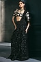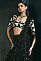 Ritika Mirchandani presents a black lehenga saree in crepe, double georgette and net base. It is paired with monochrome blouse having crystal, bugle beads and thread embroidery. Accentuate it with zircon jewellery, an embellished clutch and elegant heels for a stylish ensemble, ideal for festive occasion, cocktail and sangeet ceremonies.
