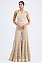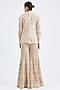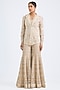 Featuring an ivory and gold blazer in crepe, double georgette and net base with crystal bugel, dori and thread embroidery. It is paired with a waistcoat and a gold hexagon sharara. Accentuate it with statement earrings and heels for a sleek look, perfect for festive occasions or wedding ceremonies.