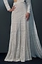 Featuring an ivory lehenga saree in crepe, double georgette and net base with crystal, bugle beads and thread embroidery. It is paired with a blouse. Accentuate it with statement earrings and heels for any festive occasion or sangeet ceremony.
