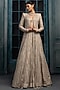 Ritika Mirchandani presents an ivory and gold lehenga in crepe, double georgette and net base with crystal, bugle beads and thread embroidery. It is paired with a floral embroidered blouse and a long jacket. Accentuate it with zircon jewellery, an embellished clutch and elegant heels for a stylish ensemble, ideal for cocktail and sangeet ceremonies.