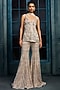Ritika Mirchandani presents a multi-colored kurta in crepe, double georgette and net base with a V-neckline, crystal, bugle beads and thread embroidery. It is paired with ivory-gold embroidered sharara pants and a dupatta. Accentuate it with zircon jewellery, an embellished clutch and elegant heels for a stylish ensemble, ideal for festive occasion, cocktail and sangeet ceremonies.