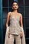 Ivory & Gold Crepe Crystal Embroidered Jacket Sharara Set