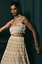 Ritika Mirchandani presents an ivory and gold lehenga in crepe, double georgette and net base with crystal, bugle beads and thread embroidery. It is paired with a tassels embroidered strappy blouse and a dupatta. Accentuate it with zircon jewellery, an embellished clutch and elegant heels for a stylish ensemble, ideal for a wedding, cocktail and sangeet ceremonies.