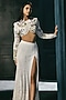 Ivory & Gold Crepe Crystal Embroidered Slit Skirt Set
