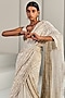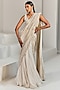 Featuring an ivory and gold pre-stitched lehenga saree in net, crepe, cupro, organza, and double georgette base with embroidery. It is paired with a matching blouse and a belt.