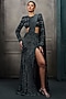 Ritika Mirchandani presents a navy blue lehenga saree in crepe, double georgette and net base with a side slit, crystal, bugle beads and thread embroidery. It is paired with an embroidered blouse having a V-neckline and full sleeves. Accentuate it with zircon jewellery, an embellished clutch and elegant heels for a stylish ensemble, ideal for festive occasion, cocktail and sangeet ceremonies.