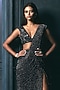 Ritika Mirchandani presents a navy blue lehenga saree in crepe, double georgette and net base with a side slit, crystal, bugle beads and thread embroidery. It is paired with an embroidered blouse having a V-neckline and cap sleeves. Accentuate it with zircon jewellery, an embellished clutch and elegant heels for a stylish ensemble, ideal for festive occasion, cocktail and sangeet ceremonies.