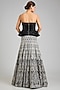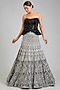 Featuring a silver and black lehenga in crepe, georgette and net base. It is paired with a corset. Accentuate it with dangler jewellery and heels for a regal look , perfect for a cocktail, sangeet ceremony or grand festive celebrations.