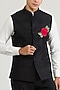 Featuring a black bundi jacket in raw silk and silk base with hand embroidery. Style it with shoes, a white shirt and black pants for a festive occasion, cocktail or sangeet ceremony, exuding charm and elegance.