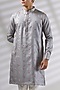 Featuring a light blue kurta in silk base with embroidery. It is paired with straight pants. Style it with kolhapuri sandals for a festive occasion, wedding, or intimate pooja ceremony, exuding charm and elegance.