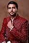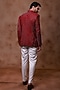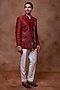 Featuring a maroon bandhgala jacket in silk base with hand embroidery. It is paired with pants. Style it with shoes for a reception, evening celebration, wedding or engagement ceremony.
