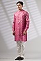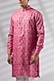 Featuring a pink kurta in silk base with embroidery. It is paired with straight pants. Style it with kolhapuri sandals for a festive occasion, wedding, or intimate pooja ceremony, exuding charm and elegance.