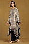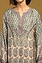 Ritu Kumar presents a beige and tapestry blue kurta in murshidabad silk base with kashida hand embroidery. Accentuate it with pants, statement jewellery, a clutch and block heels for festive occasions or pooja ceremonies.