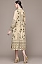 Ritu Kumar features a beige midi dress in viscose bamberg base with print and full sleeves. Style it with statement earrings, strappy heels, and a stack of delicate bangles for festive gatherings, destination weddings, sundowner parties, or elegant evening celebrations