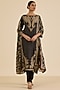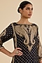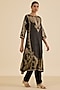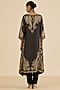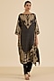Featuring a black and beige kurta in murshidabad silk base with paisley print and aari hand embroidery. It is paired with rayon crepe pants and a viscose chinon dupatta. Accentuate it with kundan polki jewellery and heels for festive occasions or sangeet ceremony.