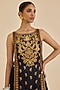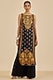 Featuring a black and rust kurta in silk satin base with floral print, hand and machine embroidery. It is paired with black bubble georgette gharara pants. Accentuate it with kundan polki earrings and heels for festive occasions.