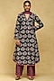 Ritu Kumar presents a black kurta in cotton silk, sushi voile and viscose chiffon base with botanic print. It is paired with palazzo pants and a dupatta. Accessorize this designer set with statement earrings and heels to achieve a complete look for festive ceremonies.
