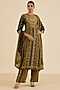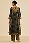 Black & Olive Murshidabad Silk Geometric Printed Kurta Set