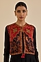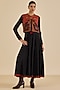Featuring a black midi dress in rayon crepe base. It is paired with a burgundy silk satin jacket having floral print, hand and machine embroidery. Accentuate it with dangler earrings and heels for festive occasions.