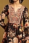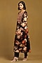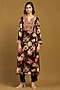 Ritu Kumar presents a black kurta in silk velvet base with floral print. It is paired with satin pants. Accentuate it with statement earrings and heels for a festive look.