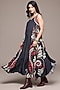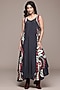 Ritu Kumar presents a black sleeveless A-line dress in vintage crepe base with abstract print. Accentuate it with statement earrings and block heels for evening wear or garden parties.