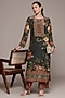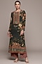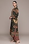 Ritu Kumar features a black kurta in viscose crepe base with floral print. It is paired with palazzo pant. Style it with oxidised jewellery, kolhapuri flats or block heels, and soft waves for brunches, festive gatherings, casual outings, vacation wear, or day events.