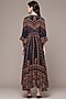 Black Viscose Crepe Floral Printed V-Neck Maxi Dress