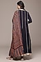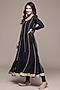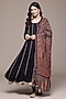 Ritu Kumar presents a black kurta in viscose lurex base. It is paired with viscose lycra jersey leggings and a viscose chinon dupatta. Accentuate it with kundan polki earrings and block heels for festive occasions or pooja ceremonies.