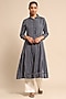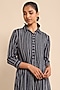 Ritu Kumar presents a blue striped midi dress in cotton poly seersucker base. It is crafted with the finest materials and will accentuate your casual look.