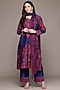 Ritu Kumar presents a blue kurta in cotton and silk base. It is paired with pants and a dupatta. Accentuate it with statement earrings and block heels for a festive look.