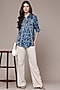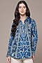 Featuring a blue top in modal satin base with geometric print. Accentuate it with pants, statement earrings and heels, ideal for brunches, casual get-togethers, or evening outings.