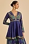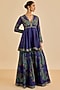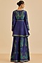 Featuring a blue kurta in murshidabad silk base with paisley print, aari and tikki hand embroidery. It is paired with rayon crepe palazzo pants. Accentuate it with meenakari jewellery and heels for festive occasions or sangeet ceremony.