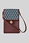 Featuring a blue and tan mobile sling bag in leather base with print. It has a magnet closure.