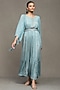 Ritu Kumar presents a blue maxi dress in viscose chinon base with botanic print. Style this designer dress with statement earrings and heels for a complete look that exudes elegance and style.