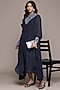 Ritu Kumar features a blue maxi dress in viscose chinon base with full sleeves. Style it with statement earrings, strappy heels, and a stack of delicate bangles for festive gatherings, destination weddings, sundowner parties, or elegant evening celebrations