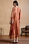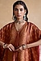 Ritu Kumar presents a brick colored and pineapple yellow kaftan dress in murshidabad silk base with floral print. Accentuate it with block heels and statement earrings for a festive look.