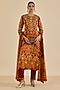 Featuring a burgundy kurta in silk satin base with floral print, hand and machine embroidery. It is paired with viscose satin lycra pants and a viscose chinon dupatta. Accentuate it with kundan polki jewellery and heels for festive occasions or sangeet ceremony.