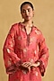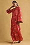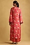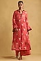 Ritu Kumar presents a coral kurta in organza base with floral print. It is paired with palazzo pants. It is crafted with the finest materials and will accentuate your casual look.