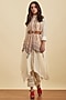 Featuring an ecru colored asymmetric kurta in viscose bamberg base with full sleeves and band collar. It is paired with a matching scarf.
