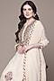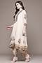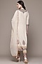 Ritu Kumar features an ecru kurta in viscose linen georgette, crepe and viscose chiffon base. It is paired with pant and a dupatta. Style it with oxidised jewellery, kolhapuri flats or block heels, and soft waves for brunches, festive gatherings, casual outings, vacation wear, or day events.