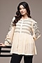 Ritu Kumar presents an ecru top in viscose silk base. It is paired with a camisole. Accentuate it with pants, stud earrings and flats for casual outings or brunches.